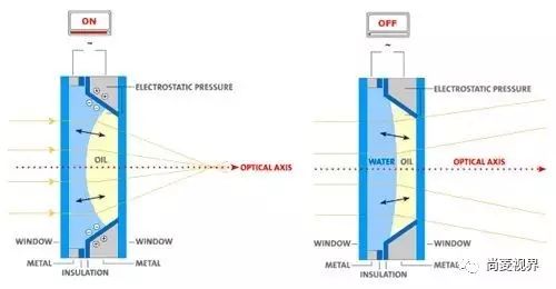 我們知道,鏡面的理想曲線是一條拋物線,不同曲率的拋物線其焦距不一樣。傳統(tǒng)的變焦鏡頭是通過(guò)調(diào)整兩個(gè)固定焦距的鏡頭之間的距離來(lái)實(shí)現(xiàn)變焦。而液態(tài)鏡頭目前隨著技術(shù)變化,也分好幾種。如:反射式液體鏡頭——旋轉(zhuǎn)水銀,得到一個(gè)理想的拋物面;自適應(yīng)性液態(tài)照相機(jī)鏡頭——由一對(duì)水滴組成,它們暴露于高頻聲波下往返振動(dòng),隨之改變透鏡的焦距;介電式液態(tài)鏡頭——使用液體聚焦光線,通過(guò)不同的電壓改變液體的形狀從而控制成像。有使用一種液體的,也有使用發(fā)射率不同的完全不能融合的兩種液體的。(還有的使用液態(tài)硅等等,就不一一列舉)